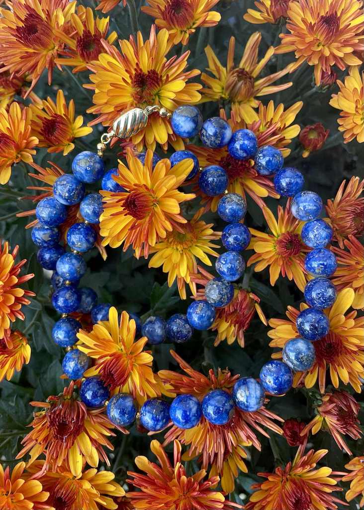 Composé de perles rondes de lapis lazuli de 10 mm, ce collier révèle un bleu profond aux reflets dorés naturels, symbole de sérénité et de confiance en soi. Les intercalaires en hématite dorée de 2 mm ajoutent une touche lumineuse et moderne, sublimant l’éclat des pierres.
