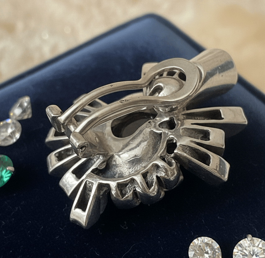 L’après-guerre, entre 1945 et 1960, marque l’âge d’or des ateliers Lenfant. À une époque où les oreilles percées ne sont pas encore la norme, ils deviennent une référence incontournable pour les systèmes de clips et de fermetures invisibles, alliant confort, fiabilité et discrétion. Le poinçon aux ailes croisées, souvent frappé de manière réduite ou partielle sur les éléments techniques, n’est pas un signe décoratif mais un véritable sceau d’atelier, marque de responsabilité plus que de visibilité.
