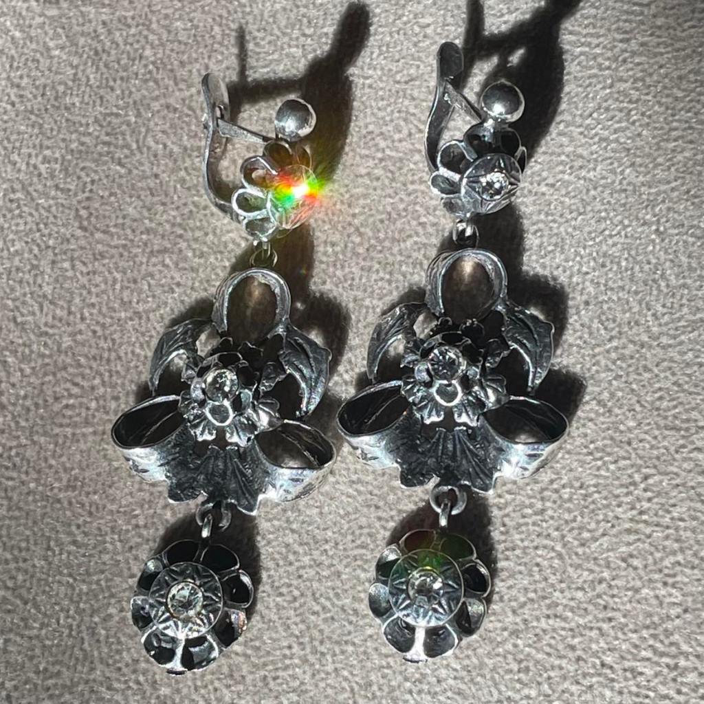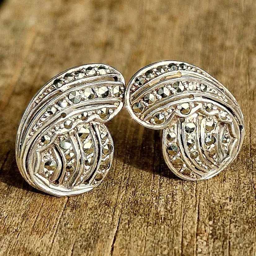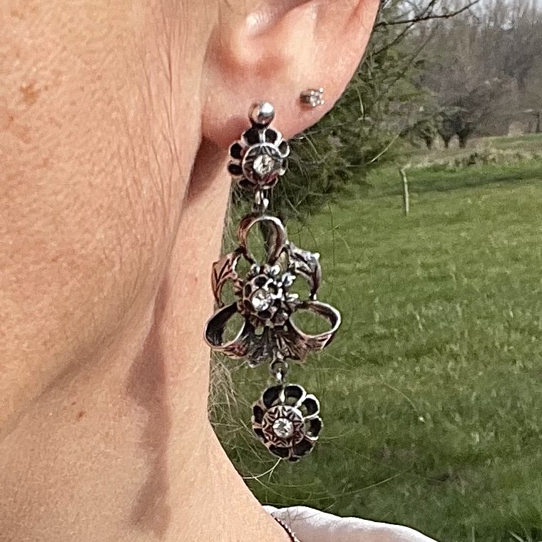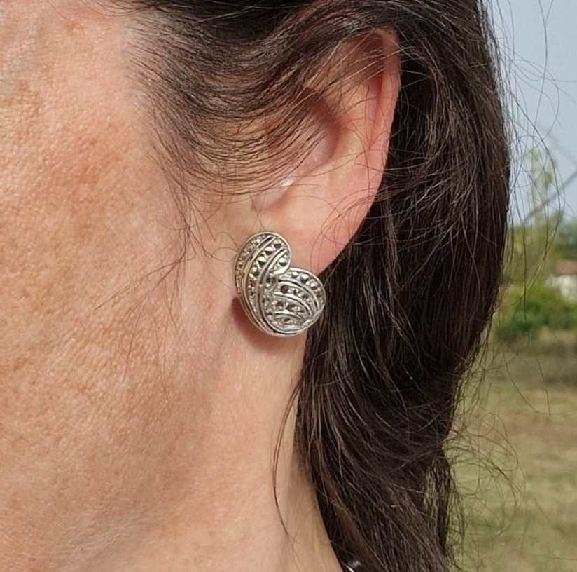 Jolie paire de boucles d’oreilles vintage, évoquant les motifs en négligé des années 30.