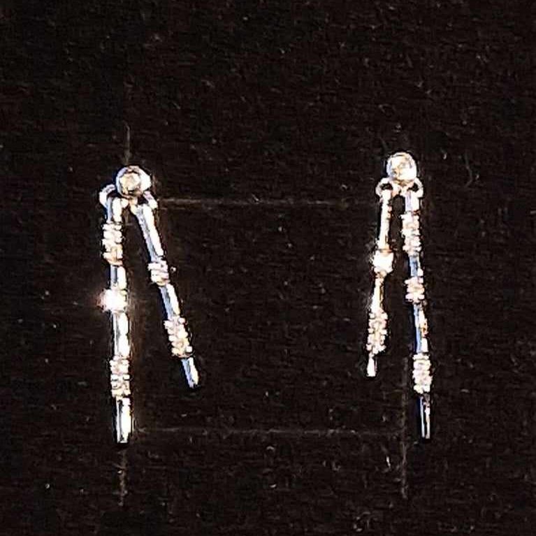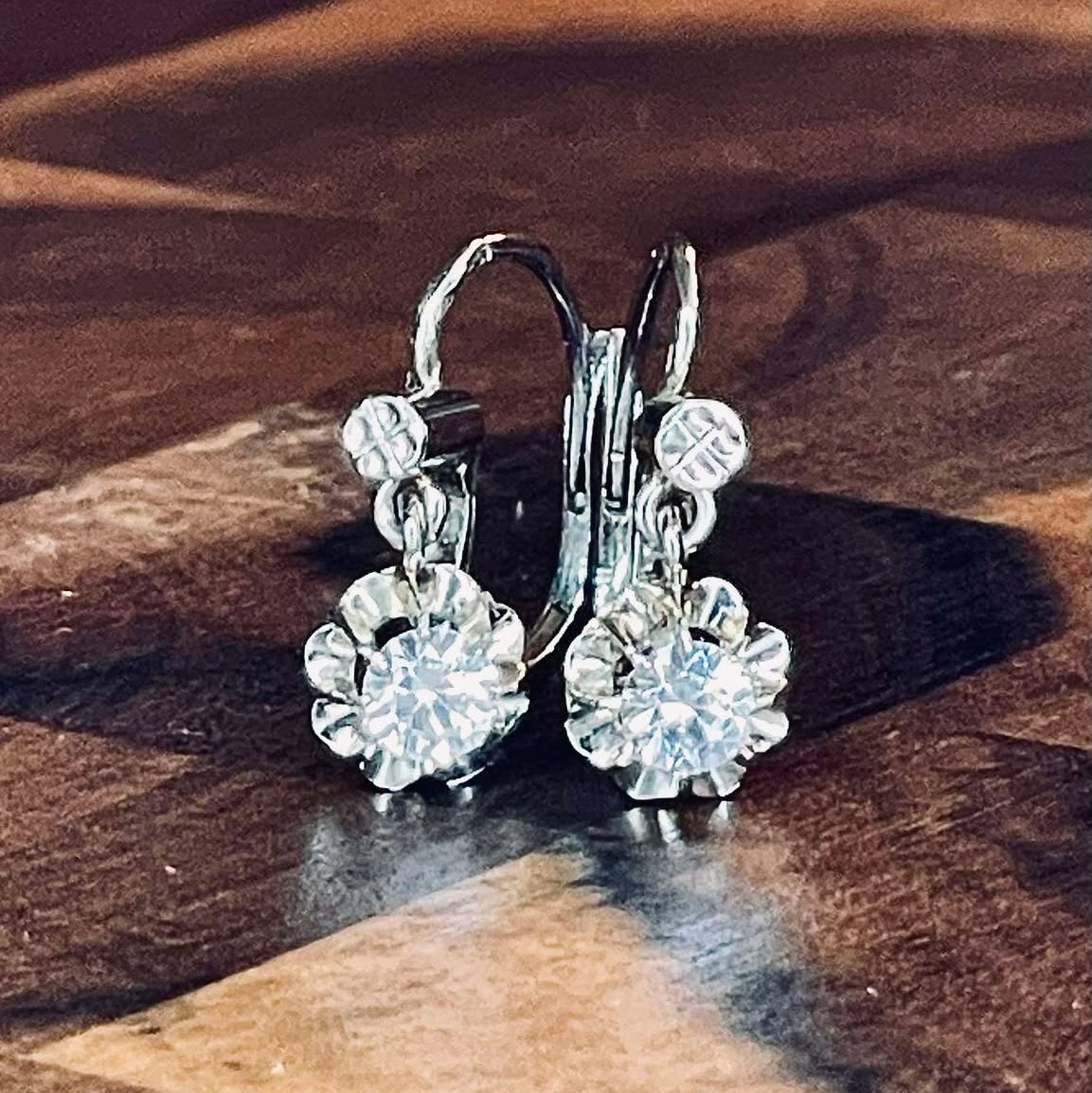 Élégante paire de boucles d’oreilles vintage des années 1950 réalisée en argent et spinelles blanches, dans un style moderniste emblématique de l’après-guerre. Ce bijou rare illustre le savoir-faire des grands ateliers parisiens de haute joaillerie. Attribué à l’atelier Georges Lenfant (Poinçon parcellaire sur le système), et notamment à Jacques Lenfant, reconnu pour l’excellence de ses mécanismes joailliers.