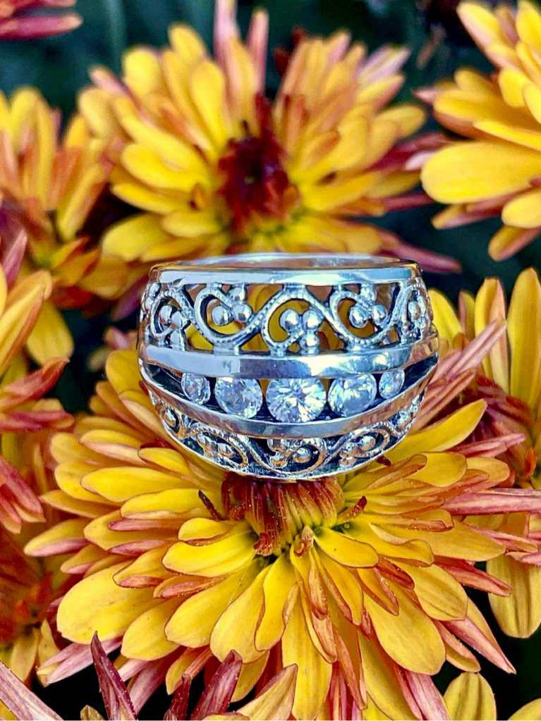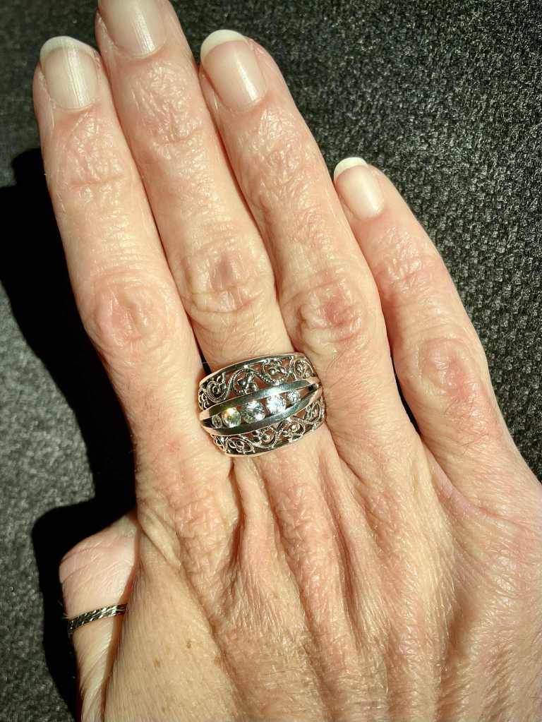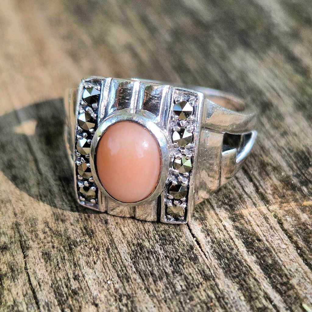 Sublimez votre main avec cette bague ancienne en argent 925, une pièce rare datant des années 1925, empreinte du charme intemporel de la période Art déco.