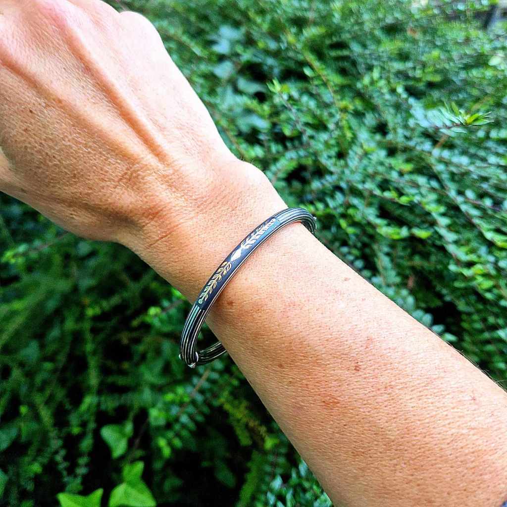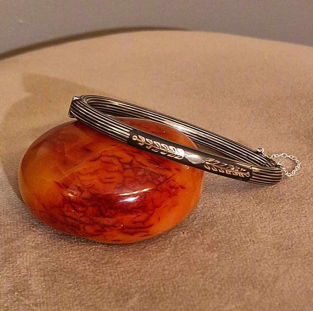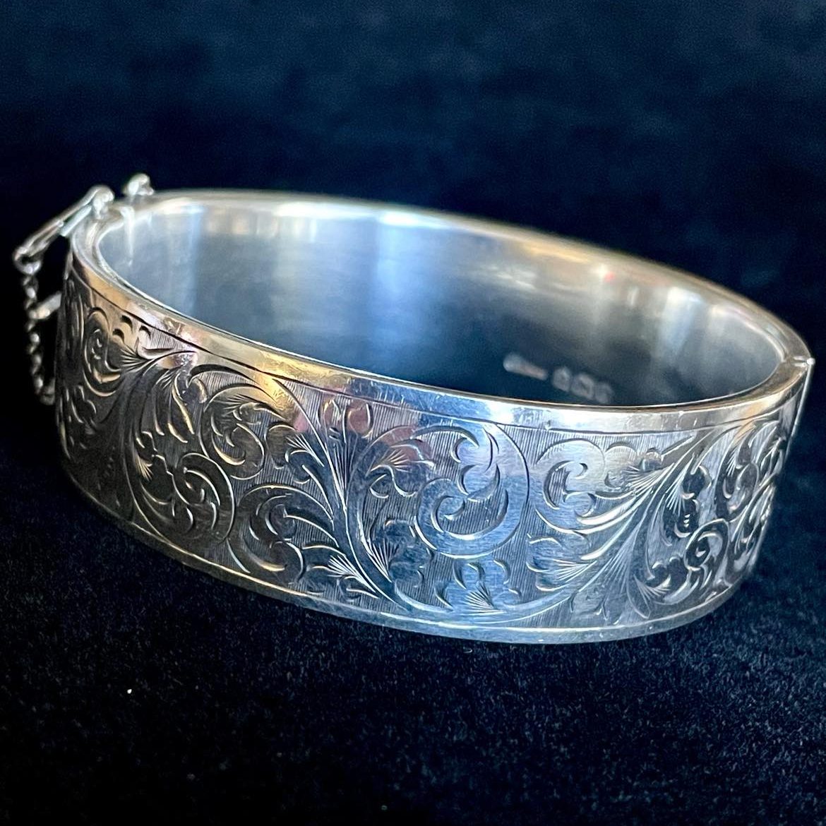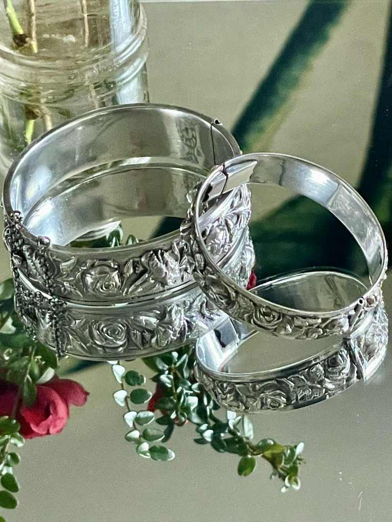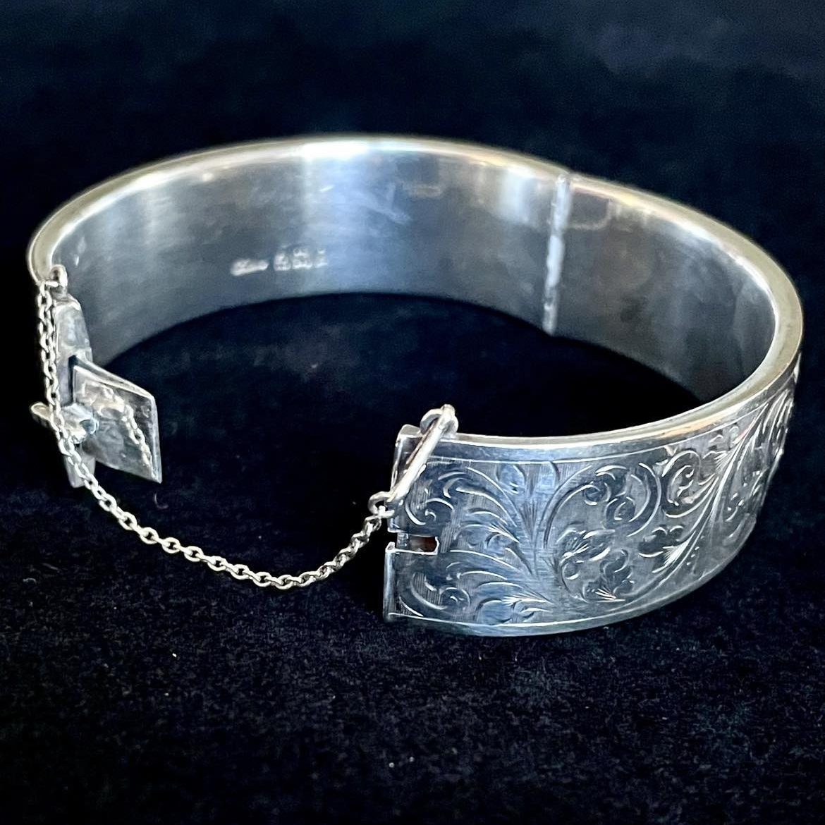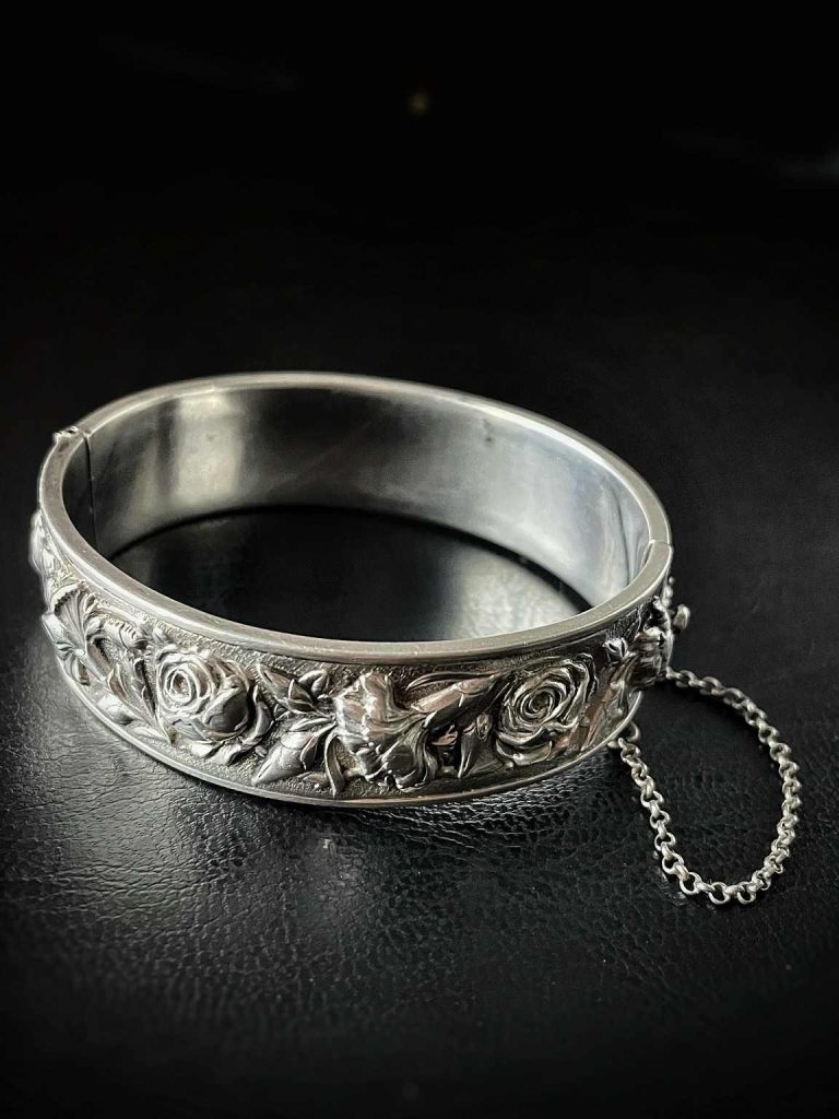 Découvrez l’élégance intemporelle de ce bracelet ancien en argent 835, un bijou Art Déco raffiné orné d’un somptueux décor de fleurs en relief – roses et d’œillets finement sculptés. Avec sa ligne structurée typique des années 1920-1930 et son délicat système de sécurité par chaînette, ce bracelet allie charme vintage et finesse artisanale. Pièce de caractère pour les amatrices de bijoux anciens, il se porte aussi bien au quotidien qu’en pièce maîtresse d’une tenue habillée. Offrez-vous un bijou unique, chargé d’histoire, idéal pour enrichir votre collection ou pour faire un cadeau inoubliable.