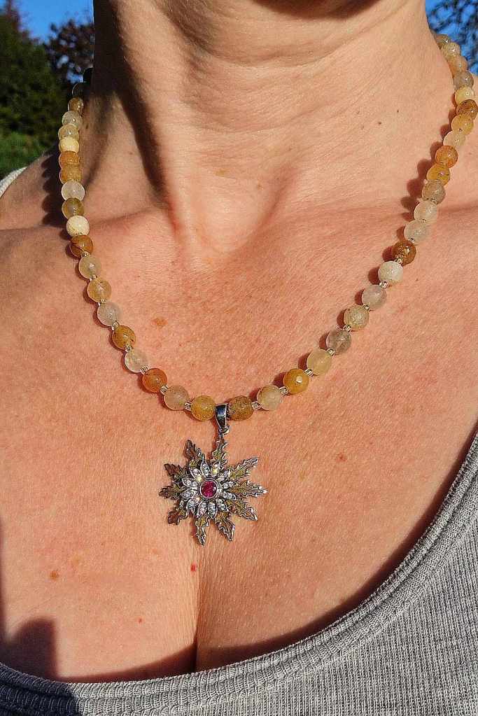 Taille des roses serties en bout du motif rayonnant central : 1,6 mm
