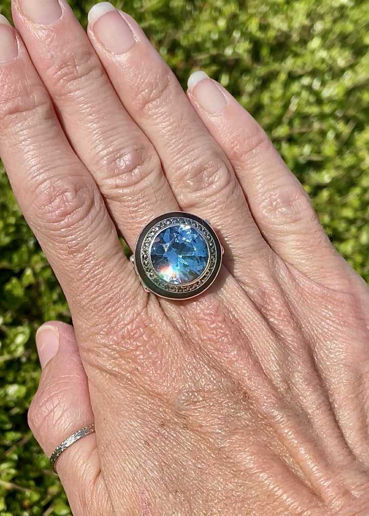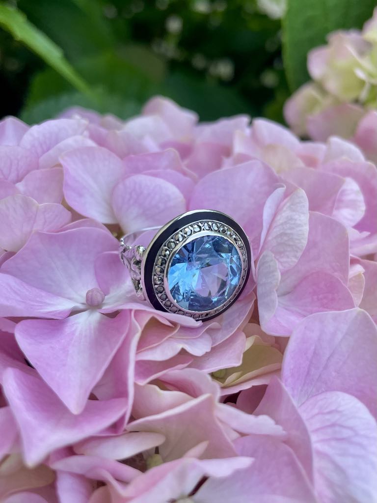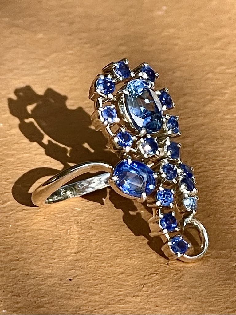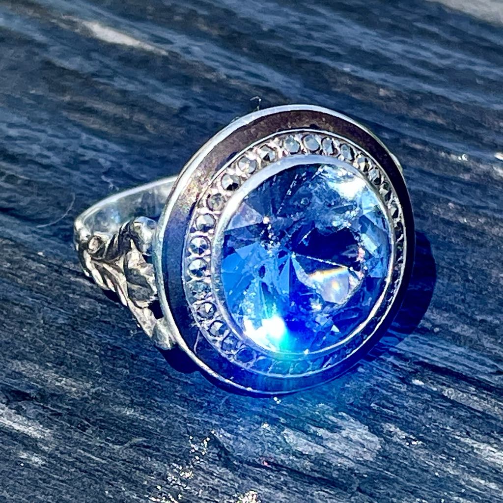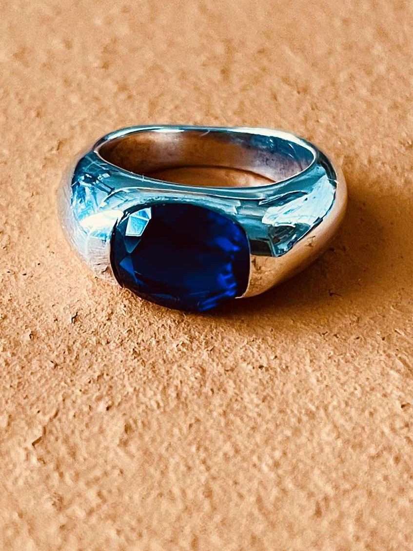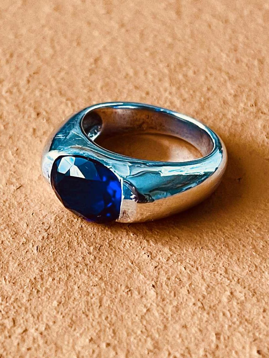 Son design épuré et ses lignes structurées mettent en valeur un magnifique saphir (de synthèse) d’un bleu profond, taillé pour capter la lumière avec éclat. Alliance parfaite entre raffinement vintage et modernité discrète, cette bague témoigne du savoir-faire joaillier de l’époque : un équilibre délicat entre l’éclat de l’argent et intensité de la pierre. Que vous soyez collectionneur, amateur de bijoux anciens ou simplement séduit par la beauté du saphir, cette bague est une invitation à l’élégance intemporelle. Elle se porte aussi bien seule, comme pièce forte, qu’associée à d’autres créations en argent pour un jeu de reflets harmonieux.